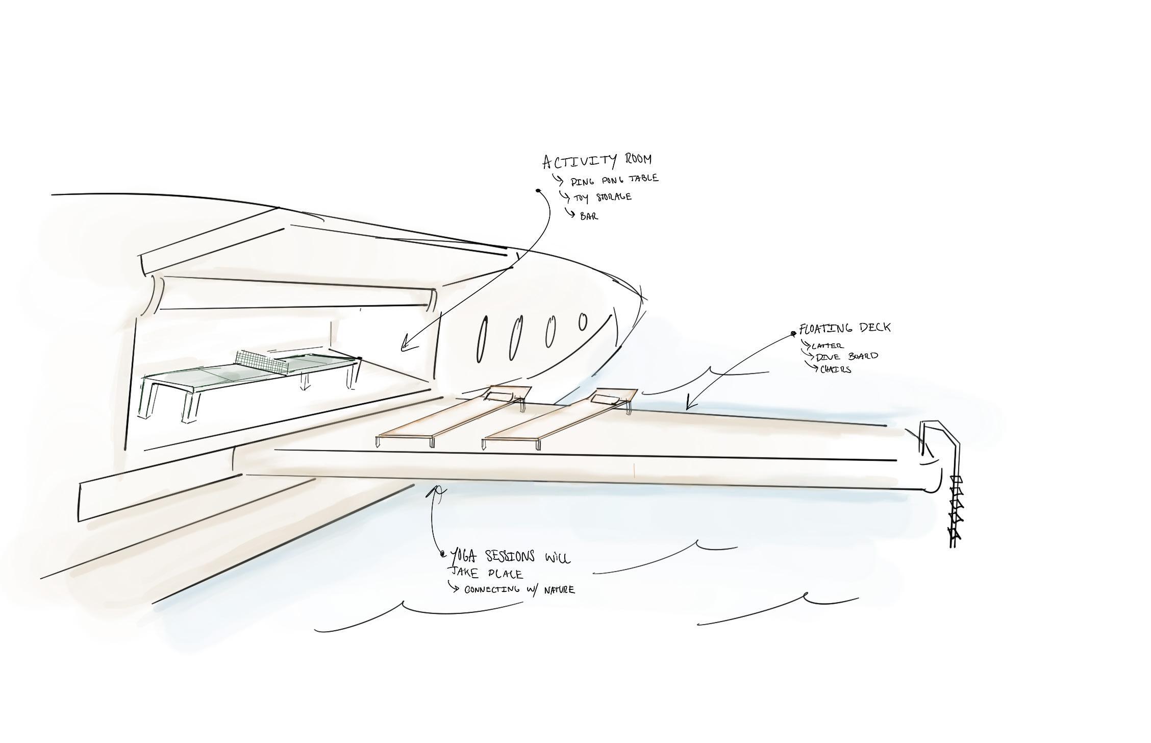 The yacht will provide a tech-free space for professionals to disconnect and engage with nature. Using biomimicry in materials and design, the yacht will foster mindfulness, relaxation, and a restored work-life balance. Curated activities will offer immersive, stress-reducing experiences, promoting wellness and mental clarity. The project demonstrates how intentional design can naturally create a harmonious balance between work and life.