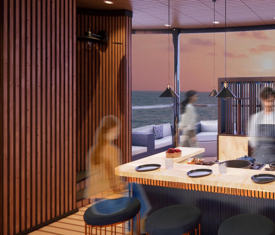 This key experience showcases the onboard grill, where guests can participate in cooking classes. A daily four-course meal is prepared using only fresh ingredients, including seafood freshly caught from the ocean. This offers guests an engaging, hands-on experience while enjoying the luxury of gourmet dining.