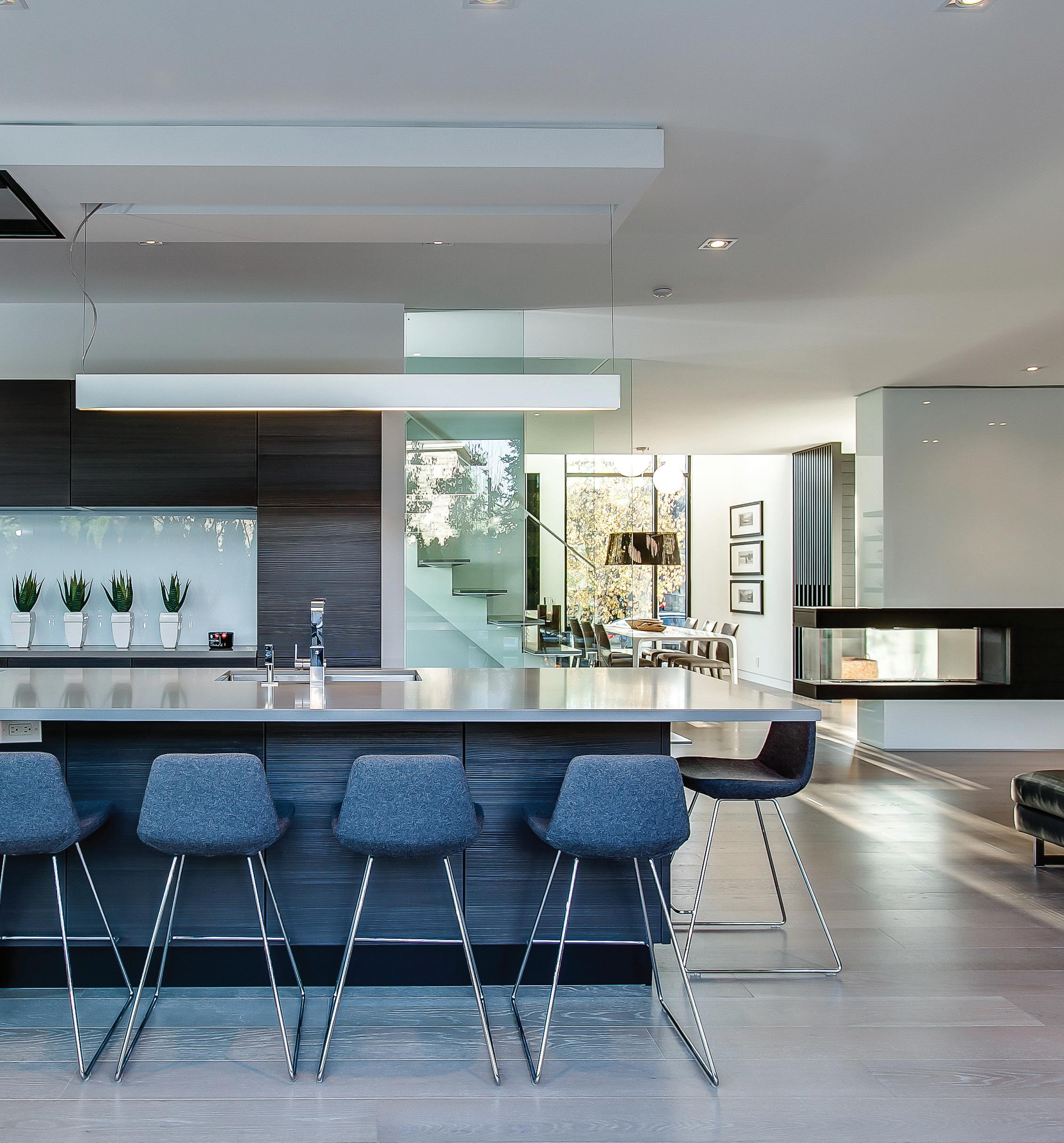 “It’s a house you can lose yourself in,” says Cohen. “With its hotel-like feel in the back area with the pool, spa, fireplace and lounge chairs, the lighting on the façade, the home theatre in the lower level and an elevator to get you everywhere, it’s the perfect combination of both comfort and convenience.”
