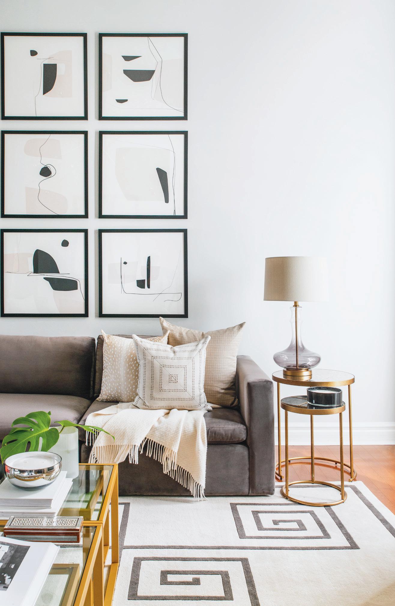 and management. This particular home was special to her, as the homeowners are both in the medical field, and have been working tirelessly throughout the pandemic. Because of their busy careers, the couple envisioned a true oasis – a place that felt comfortable, yet exuded elegance and refinement. “In the chaotic world we live in, creating a home that nurtures and offers solace is really important. With the daily stresses that they face, it’s nice for them to have a beautiful and functional refuge,” says Janeiro.