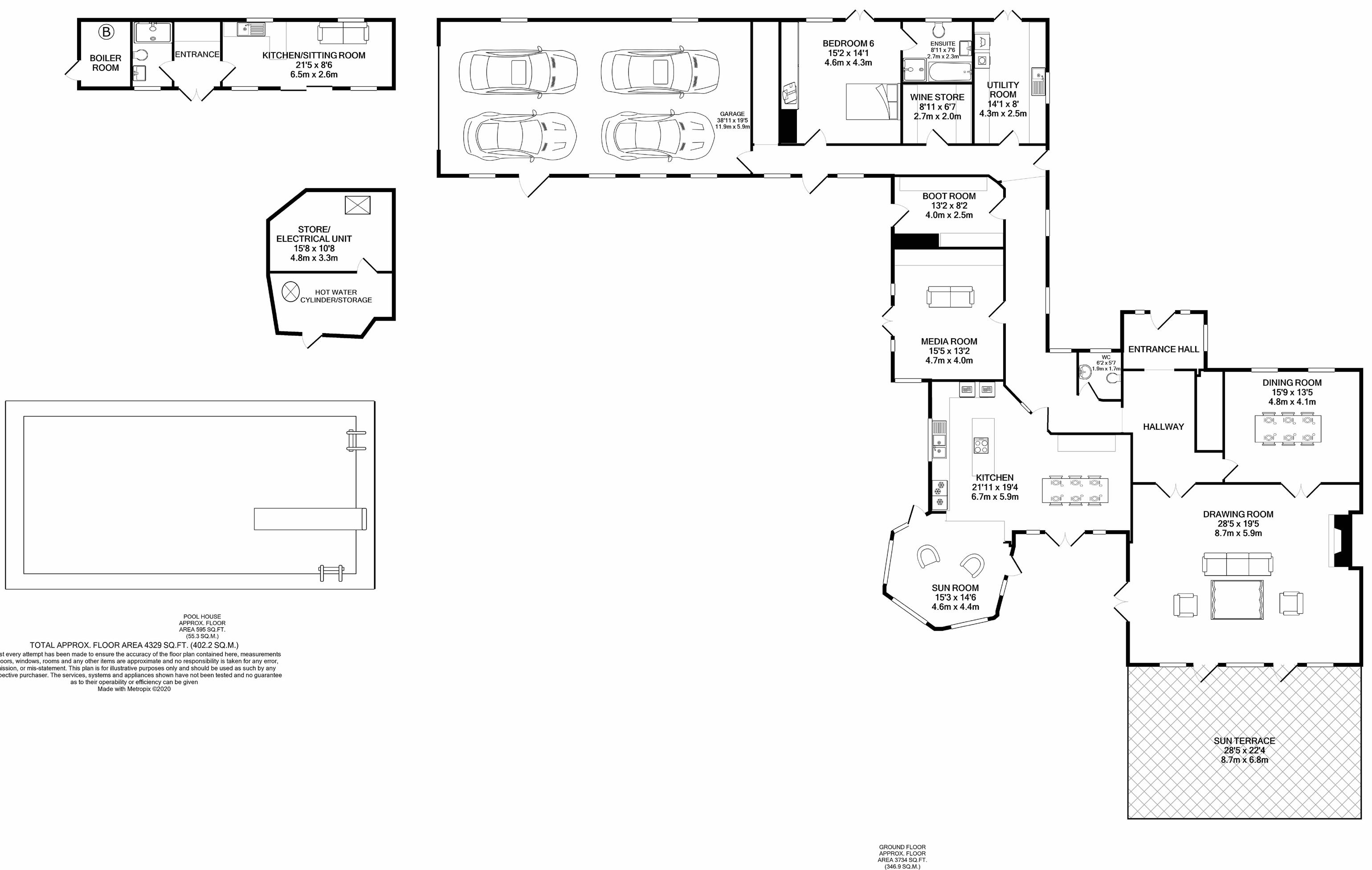 Externally, the landscaped grounds comprise tennis court, fabulous 14m infinity edge swimming pool, extensive South facing terracing and lawns - all bounded by mature planting and granite walls providing a highly private and inspiring home worthy of internal viewing.