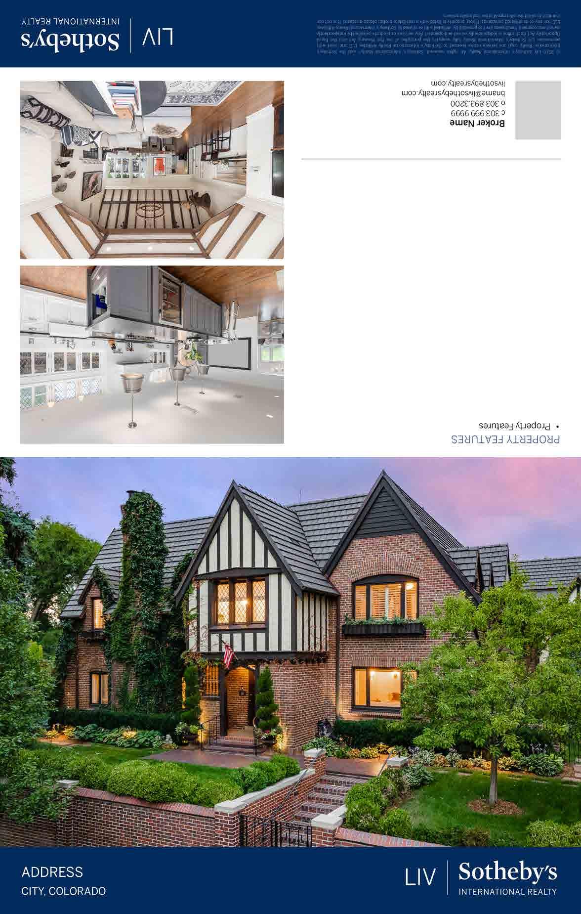 ADDRESS CITY, COLORADO PROPERTY FEATURES • Property Features Broker Name c 303.999.9999 o 303.893.3200 bname@livsothebysrealty.com livsothebysrealty.com © 2020 LIV Sotheby’s International Realty. All rights reserved. Sotheby’s International Realty® and the Sotheby’s International Realty Logo are service marks licensed to Sotheby’s International Realty Affiliates LLC and used with permission. LIV Sotheby’s International Realty fully supports the principles of the Fair Housing Act and the Equal Opportunity Act. Each office is independently owned and operated. Any services or products provided by independently owned and operated franchisees are not provided by, affiliated with or related to Sotheby’s International Realty Affiliates LLC nor any of its affiliated companies. your property is listed with real estate broker, please disregard. It is not our intention to solicit the offerings of other real estate brokers. HEADLINE Property Description