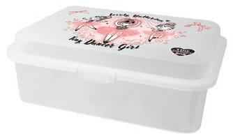• Műanyag uzsonnásdoboz divatos mintákkal (az iskolatáskákkal és más kiegészítőkkel összeillő dizájn)