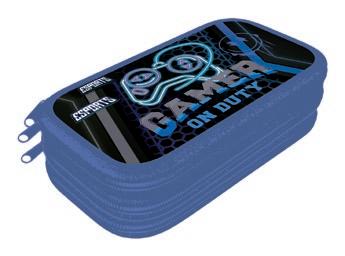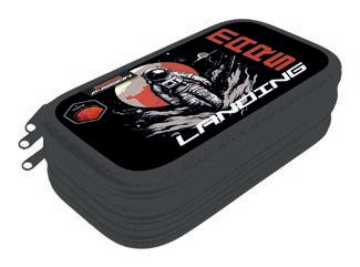 • Textil tolltartó, 3 emeletes, 3 tartós cipzárral, töltés nélkül. 39 + 4 gumis bújtató az írószerek és egyéb kiegészítők számára.