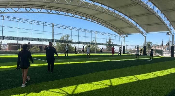 Para que más niñas, niños y jóvenes practiquen deporte y convivan sanamente, el presidente municipal, Leonardo Montañez, impulsó la rehabilitación de la cancha de futbol de pasto sintético en el fraccionamiento Pensadores Mexicanos.