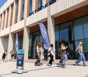 The five-storey Student Life Building is home to a range of student-facing services and study spaces, and the two-storey Sports Building houses outstanding facilities such as an eight-court sports hall, two multipurpose halls and a state-of-the-art gym. Though located at our Mount Pleasant Campus, these fantastic facilities are open to all our students. A shuttle bus will be available throughout the day to transport you between the campuses to give you the opportunity to explore our range of facilities. The bus stop locations can be seen on the map on p.27
