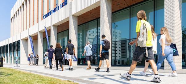 • The five-storey Student Life Building houses a range of student-facing services and study spaces.