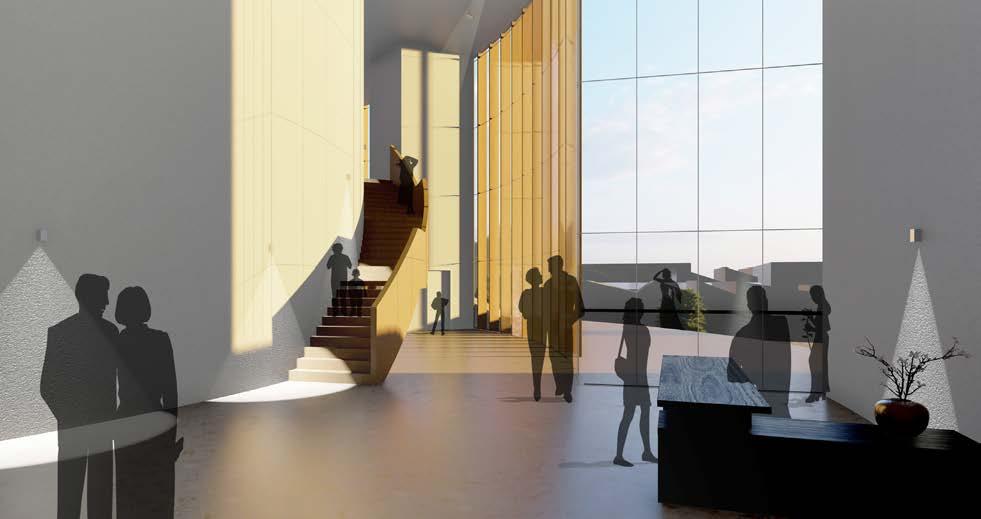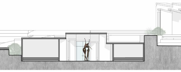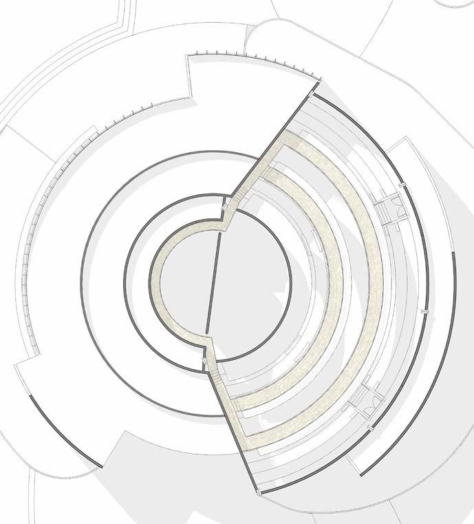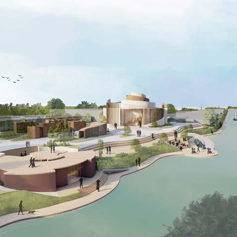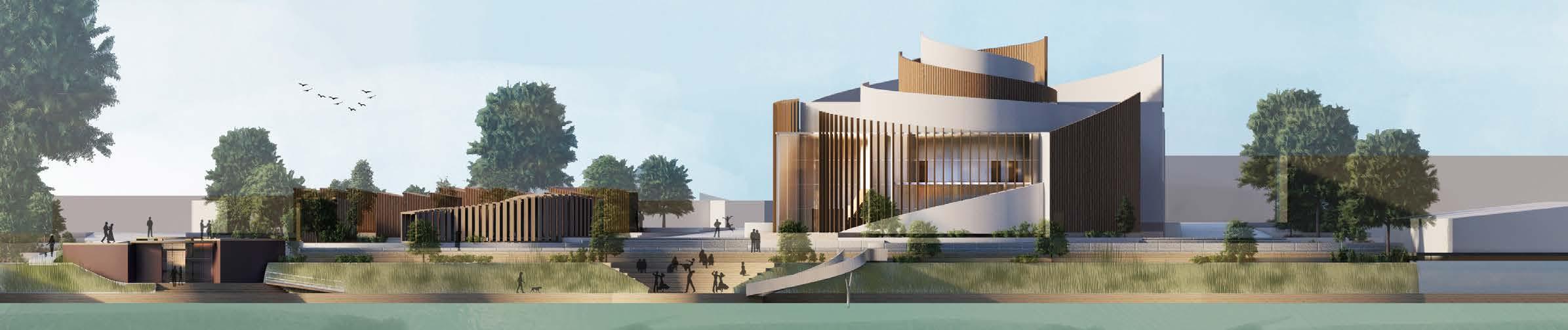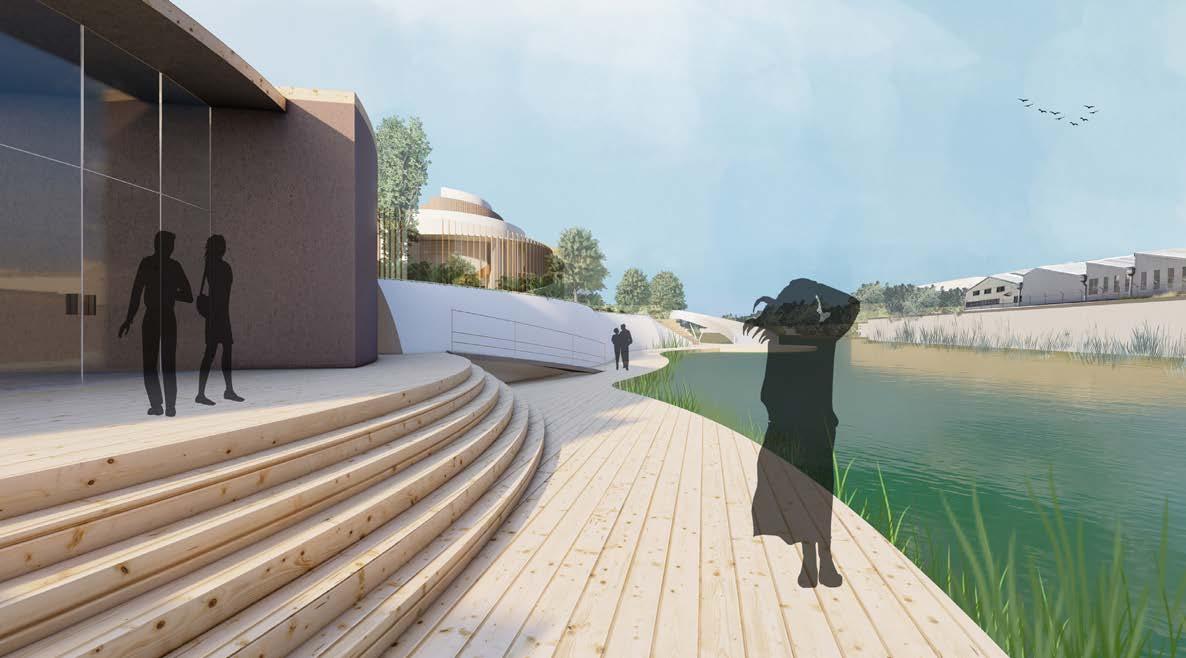 The design offers a narrative-driven experience, guiding visitors who have also left behind their creative passions. Entering from the back of the site, the journey begins with a life exhibition hidden underground near the water, a quiet space for reflection. Emerging to ground level, visitors move through small pavilions and sunken outdoor amphitheatre, spaces that encourage interaction and expression. The path culminates at the main theatre, a tall, sculptural form symbolising rebirth and continuation.
