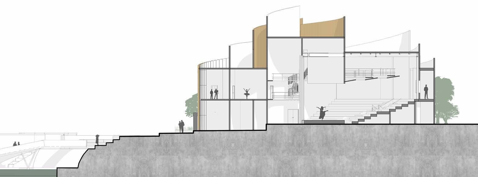 reflects dance movements of turning, release and flow - inspiring a massing that em bodies rhythm, grace, and continuous spatial motion through form.
