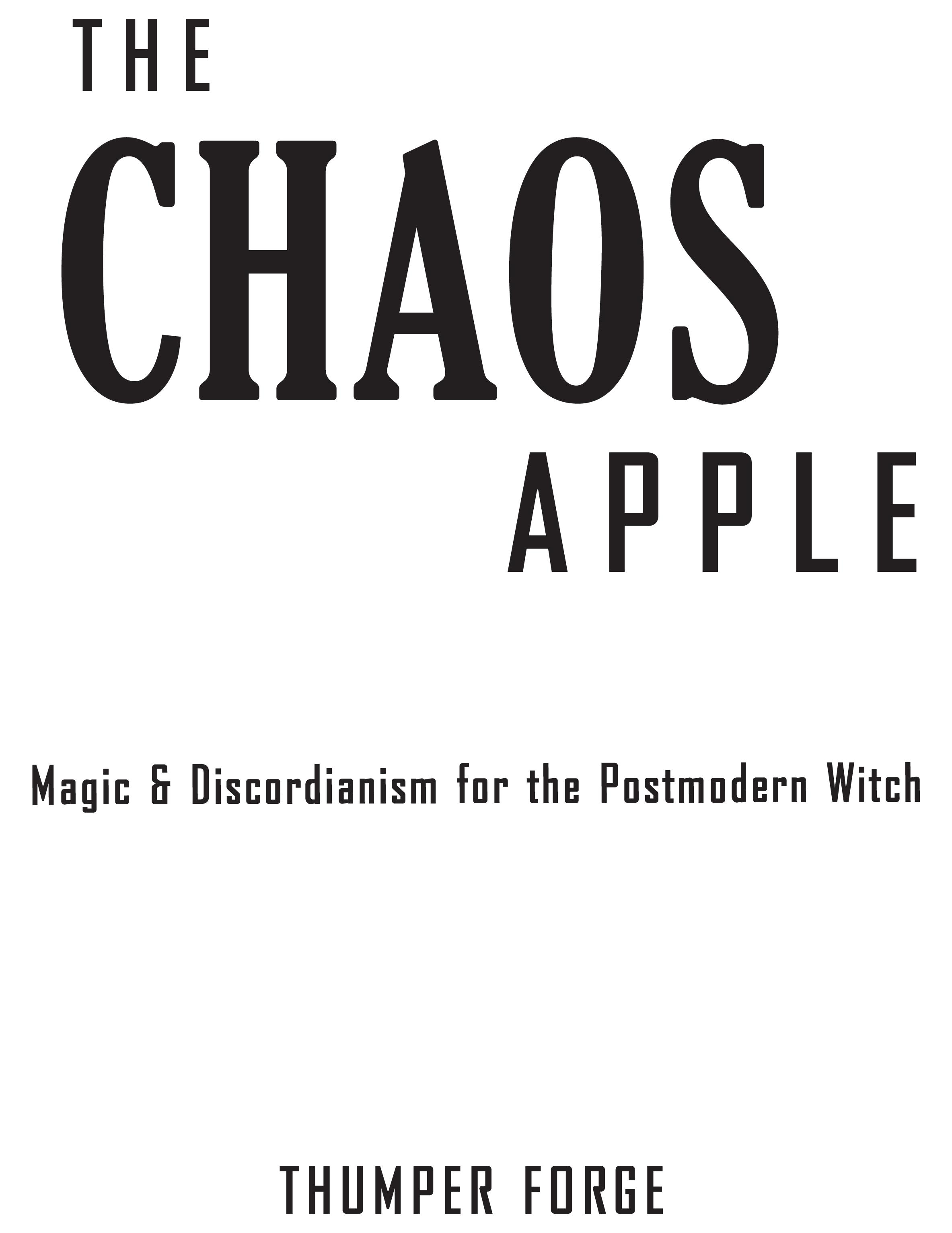 The Chaos Apple: Magic & Discordianism for the Postmodern Witch Copyright © 2025 by Thumper Forge. All rights reserved. No part of this book may be used or reproduced in any manner whatsoever, including internet usage, without written permission from Llewellyn Worldwide Ltd., except in the case of brief quotations embodied in critical articles and reviews. No part of this book may be used or reproduced in any manner for the purpose of training artificial intelligence technologies or systems.