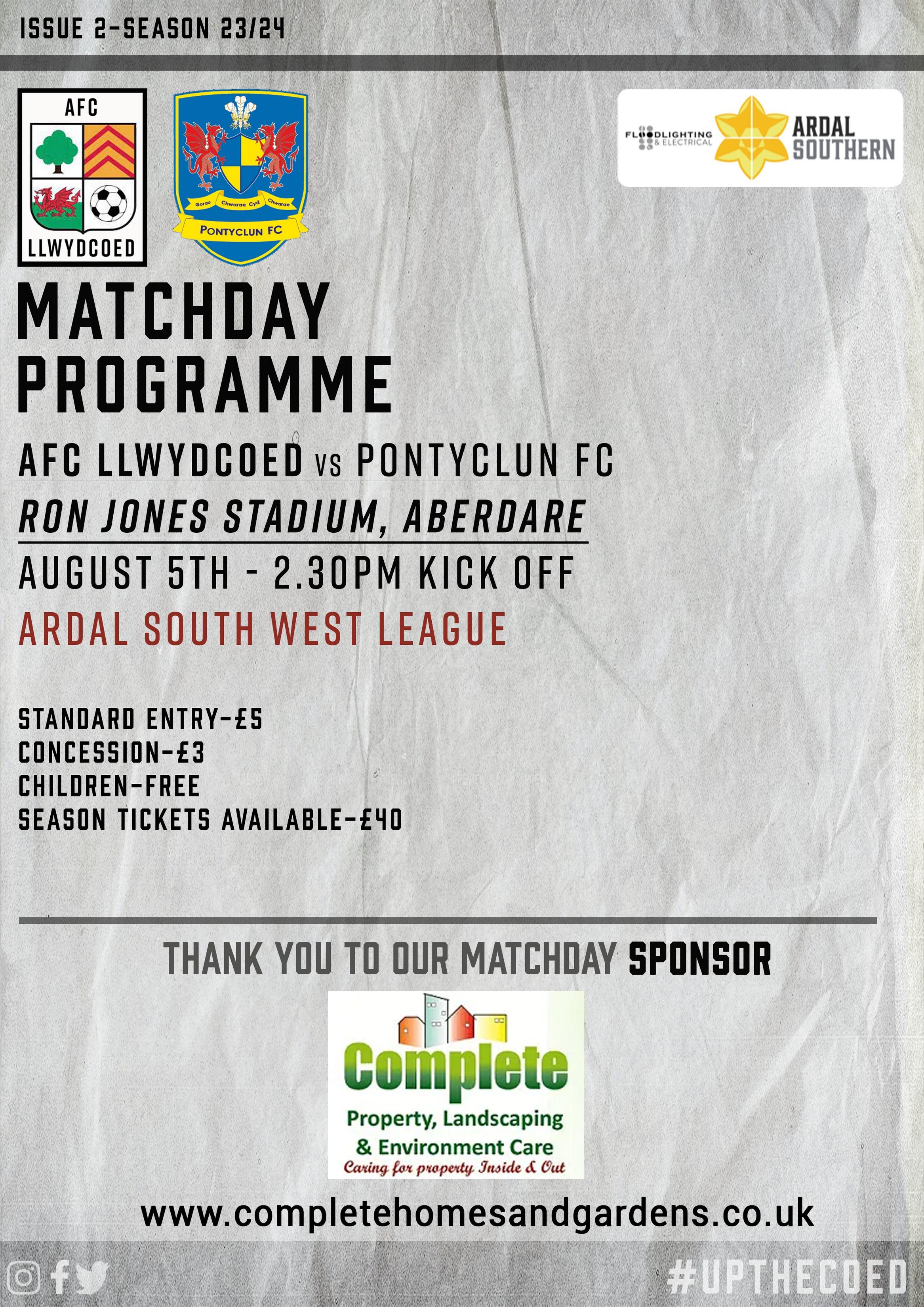 Match Day Programme vs Pontyclun FC