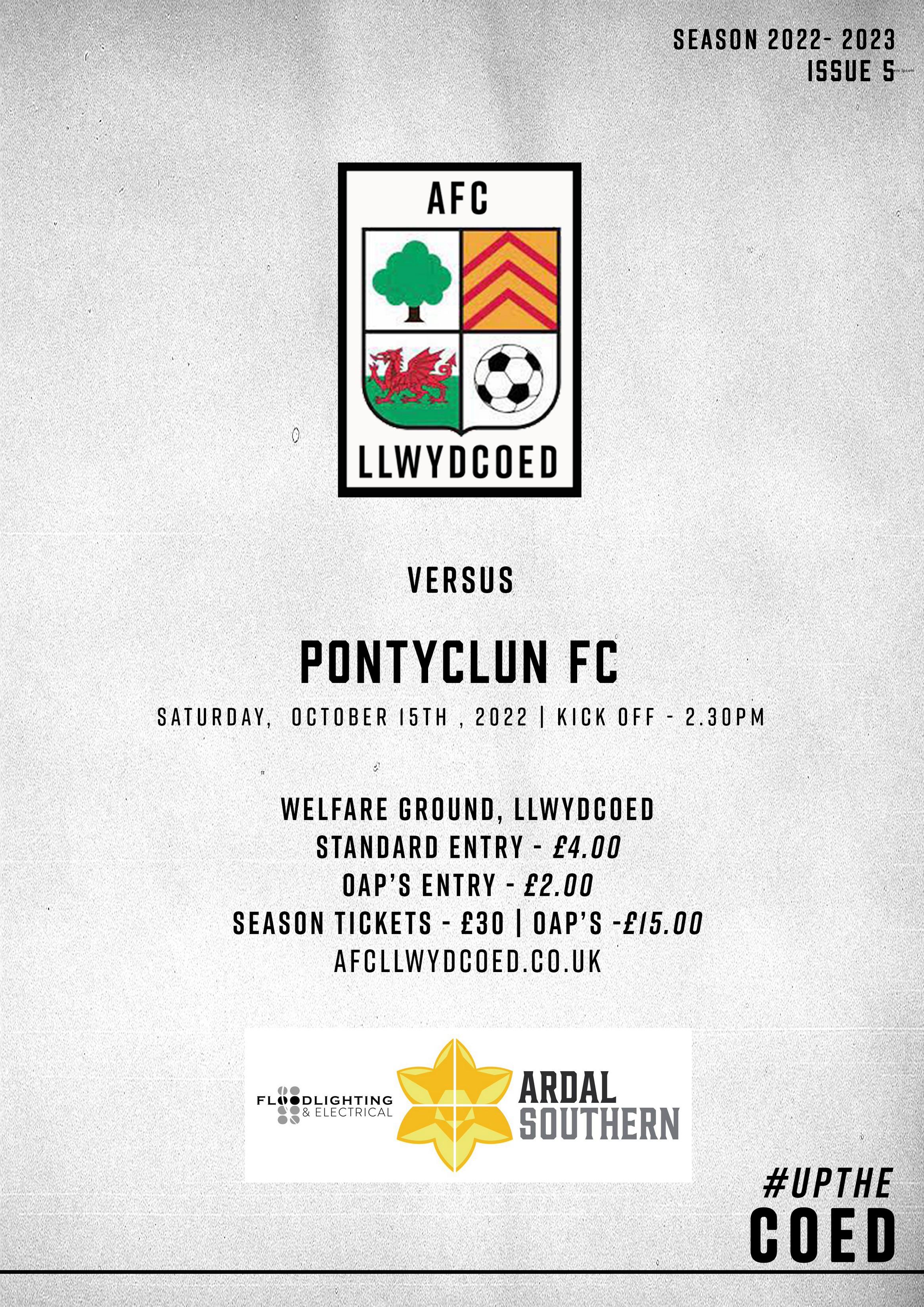 Match-day Programme vs Pontyclun FC by AFC Llwydcoed - Issuu