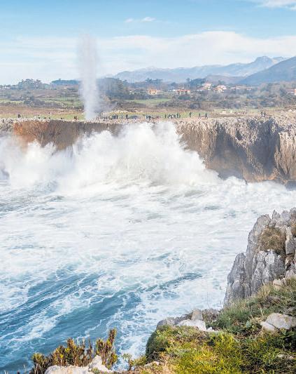 que conectan el mar con la tierra. El golpe del oleaje en calma contra los acantilados provoca la expulsión del aire comprimido en las galerías. En Llanes encontramos los Bufones de Pría, de Arenillas y Santiuste, estos dos últimos catalogados como Monumento Natural. La playa de Gulpiyuri tiene una forma circular, reducida dimensiones y está rodeada de verdes praderías, mientras que la playa de Cobijero es un mágico enclave, compuesto por una playa interior, antiguo campo de bufones erosionados, cuevas y un puente natural.