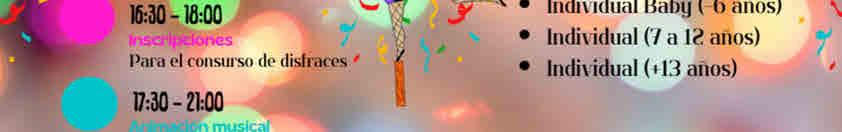 cindible sacar el ticket para ello. A partir de las 23:30 horas llegará el gran baile amenizado por Diego y su acordeón. La 01:30 horas será el momento del concurso de disfraces en el que todos los niños tendrán premios, y donde no faltarán los galardones dotados con 100 euros para los mejores de cada categoría: individual, parejas, tríos y grupos.