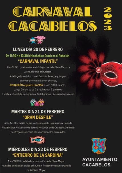 * CONCURSO DE DISFRACES . INSCRIPCIONES en el Ayuntamiento DESDE EL 13 hasta las 17:15 del 18 de febrero antes del desfile que sale de la plaza mayor.