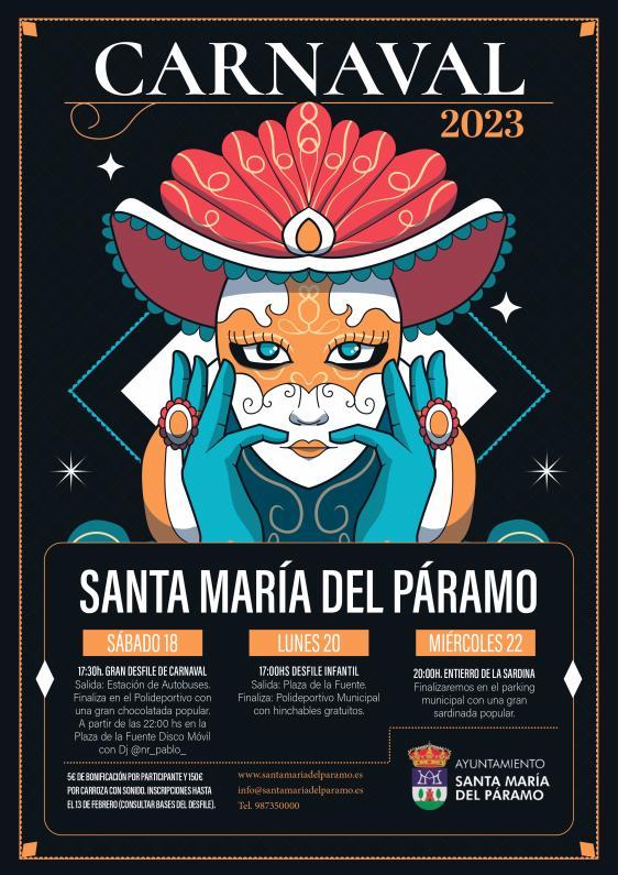 Dicho desfile arrancará a partir de las 17:30 horas con salida desde la estación de autobuses y según las estimación del Ayuntamiento participarán cerca de 1.500 personas. Como es habitual, el desfile recorrerá las diferentes calles de Santa María del Páramo, finalizando en el Polideportivo Municipal donde todos los participantes podrán disfrutar de una chocolatada y seguir la fiesta allí con una discoteca móvil. Asimismo, la fiesta carnavalera continuará por la noche a par-