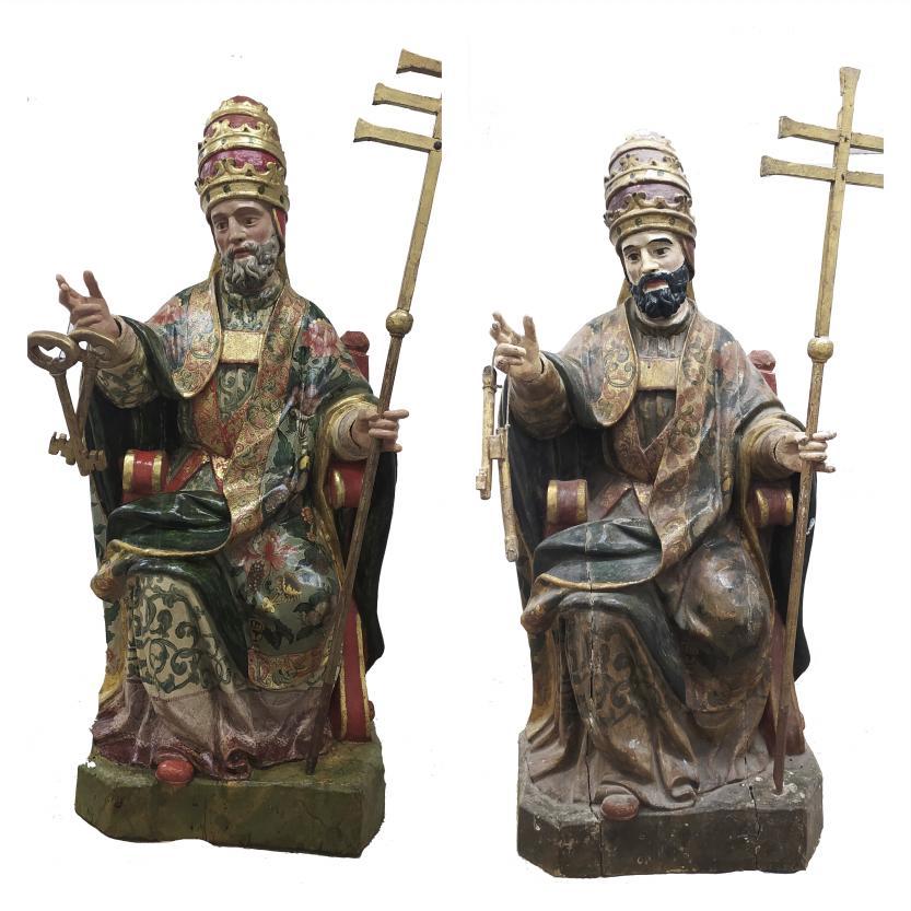Un taller de restauración de arte sacro para recuperar el patrimonio y ponerlo en valor como recursoSan Ildefonso también antes y después de ser restaurado. :: L.N.C. Imagen de San Pedro antes y después de la restauración. :: L.N.C.