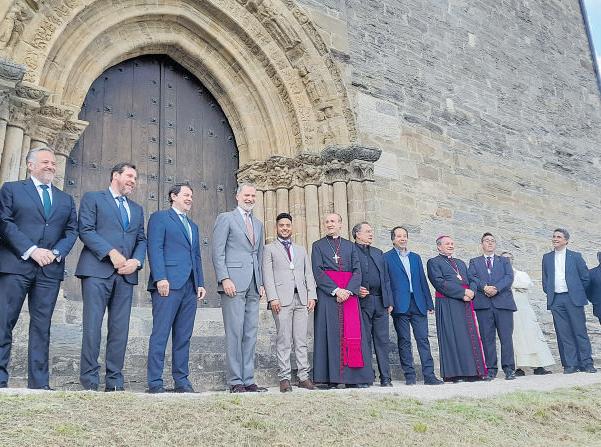 tela- en la villa del Burbia, con la participación real y la de un elenco de instituciones. El presidente de la Junta de Castilla y León, Alfonso Fernández Mañueco le acompañó y destacó la calidad de la muestra que espera que resulte atractiva, también para potenciar el Camino de Santiago. Una muestra que destaca por su singularidad y pluralidad. Una calidad de piezas de gran valía que se unen en un mensaje común muy estudiado, el de ‘Hospitalitas. La Gracia del Encuentro / A Graza do Encontro’, que da nombre a la muestra.