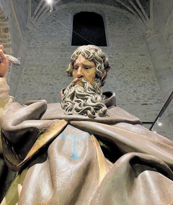V ILLAFRANCA. Tras años solicitando ser sede de Las Edades del Hombre y justificando su potencial, como esa «pequeña Compostela berciana» patrimonial, cultural, turística y musical, Villafranca conseguía que la Fundación que realiza la muestra pusiera sus ojos en ella. Pero lo hizo ideando un nuevo proyecto, la de compartir cita. El enlace estaba claro: el camino de Santiago. Y del otro lado, Santiago de Compostela. Para Villafranca ha sido la mejor de las noticias para un 2024 que la pone en el mapa y que busca aprovechar a nivel turística para que haya un antes y un después de esta efemérides para que la que preparó dos templos a conciencia, la Colegiata y la Iglesia de Santiago, la única en la que se puede obtener en el jubileo en todo el Camino sin llegar a Santiago por razones de enfermedad. Más de un centenar de piezas de arte sacro pueblan la Colegiata que luce como nunca con esa muestra, que se complementa con un viaje virtual que ofrece la iglesia de Santiago. Toda una innovación que ya va dejando un chorro de visitantes a la villa berciana. Los locales no olvidarán que 2024 es el año de las Edades, pero, sin duda,