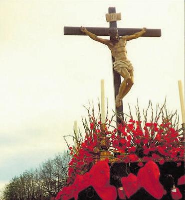 :: El pasado domingo la Cofradía María del Dulce Nombre celebró la festividad de Nuestro Padre Jesús del Consuelo con una misa en la parroquia donde permanece expuesta al culto la talla de Cristo en la localidad de Pobladura del Bernesga. Al término de la eucaristía, la Banda de Cornetas y Tambores del Dulce Nombre de Jesús Nazareno, que acompaña a la imagen en la procesión de cada Jueves Santo, hizo una ofrenda floral.