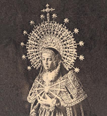 A1826, hace casi dos siglos, se remonta –según Máximo Cayón Waldaliso– la presencia de la Virgen en la procesión de ‘Los Pasos’, si bien no sería hasta 1849 cuando la Cofradía de Jesús contase con una imagen propia de la Dolorosa, debida a un desconocido Gerónimo Román. Antes y después de ella, a partir de 1941, sería la Soledad de Angustias la que desfilase en la mañana del Viernes Santo. Visto el estado de deterioro de la efigie, tras la elección del nuevo abad, el 10 de octubre de 1946, «no se piensa hacer nada nuevo, reservando los ingresos de dos o tres años para adquirir una imagen y manto bordado de la Santísima Virgen». Y es el seise Gonzalo de Paz quien realiza la primera aportación para ello: 5000 pesetas, que supondrían buena parte de las 34.500 en las que se cifraría su coste final.
