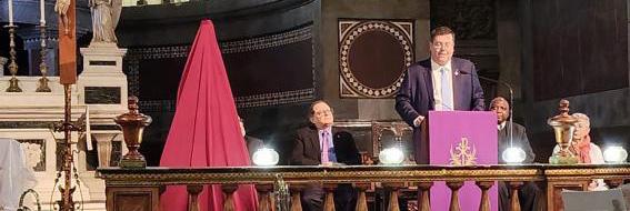 Xuasús González, durante su pregón en Barcelona. :: CONSEJO DE HERMANDADES DE BARCELONA