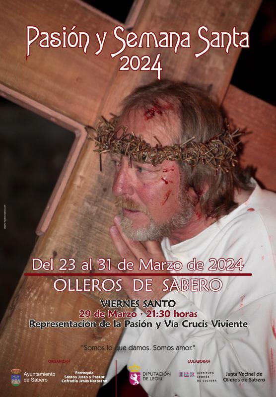 El Viernes Santo, día 29 de marzo, la programación en Olleros de Sabero continuará a las 12:00 horas con la oración del Vía Crucis, a las 19:00 horas con la celebración de la Pasión del Señor en la iglesia parroquial, y a las 21:30 horas con la representación de la Pasión y Vía Crucis viviente, acompañada por la Agrupación Musical de Cistierna. Éste es el momento álgido de la Pasión valsaberense. El Vía Crucis Viviente de Olleros reproduce las principales escenas de la Pasión y Muerte de Jesús, en una versión de los Evangelios teatralizada por los vecinos que se remonta al año 1993. Más de tres décadas después, cada Viernes Santo son miles las personas que acuden puntualmente a la cita a las nueve y media de la noche.