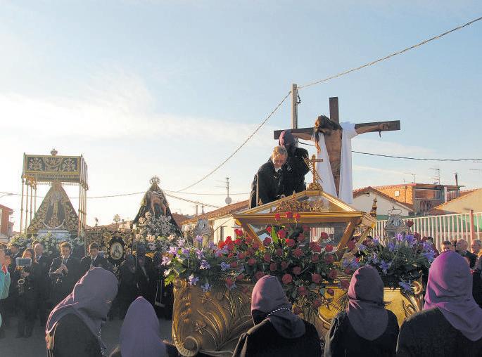 go de Pascua, destacan las de Los Pasos del Jueves Santo y el Santo Entierro del Viernes Santo, en las que procesiona el Santo Cristo Crucificado, la talla de ma-