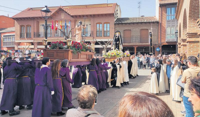 La Semana Santa culmina con el Domingo de Pascua, a las 12:00, de nuevo con una procesión doble que sale desde la Colegiata por un lado, con el Resucitado y María Magdalena, y se juntan en la Alameda para protagonizar el Encuentro.