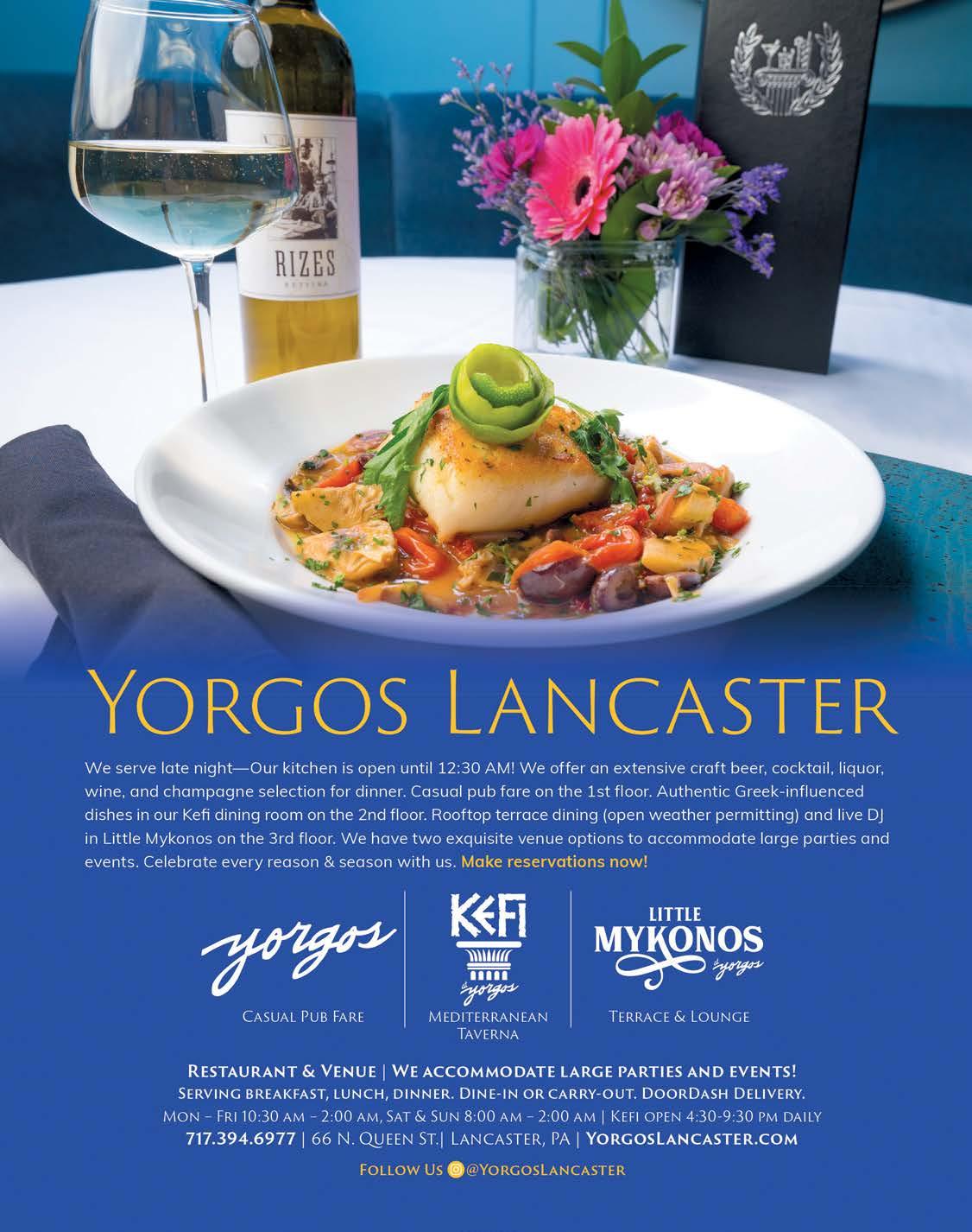 Garlic smashed potatoes, baked potatoes, Greek lemon potatoes, se asonal ve ge tabl e, rice pila f, co le sl aw, fren ch fr ies, onion rings, house sala d, creame d corn*, tr uf fle fr ies*, Yorg os bake d macaroni & cheese*, Horta swiss chard*, sweet potato casserole*