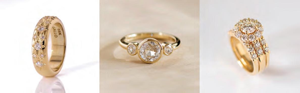 Theprocessofcreating a custompieceof jewelryisfunandinteractive,she says Clientscanexpecteverythingfrom3D animationthatallows themtochange featureslike stonetypes, sizesandmetal colorto a 3D-printedmodel thattheycan tryon.Thewhole process, fromsourcing stonestocastingto stonesetting,isdone in-house by Galloandthetwojewelerson her staff.