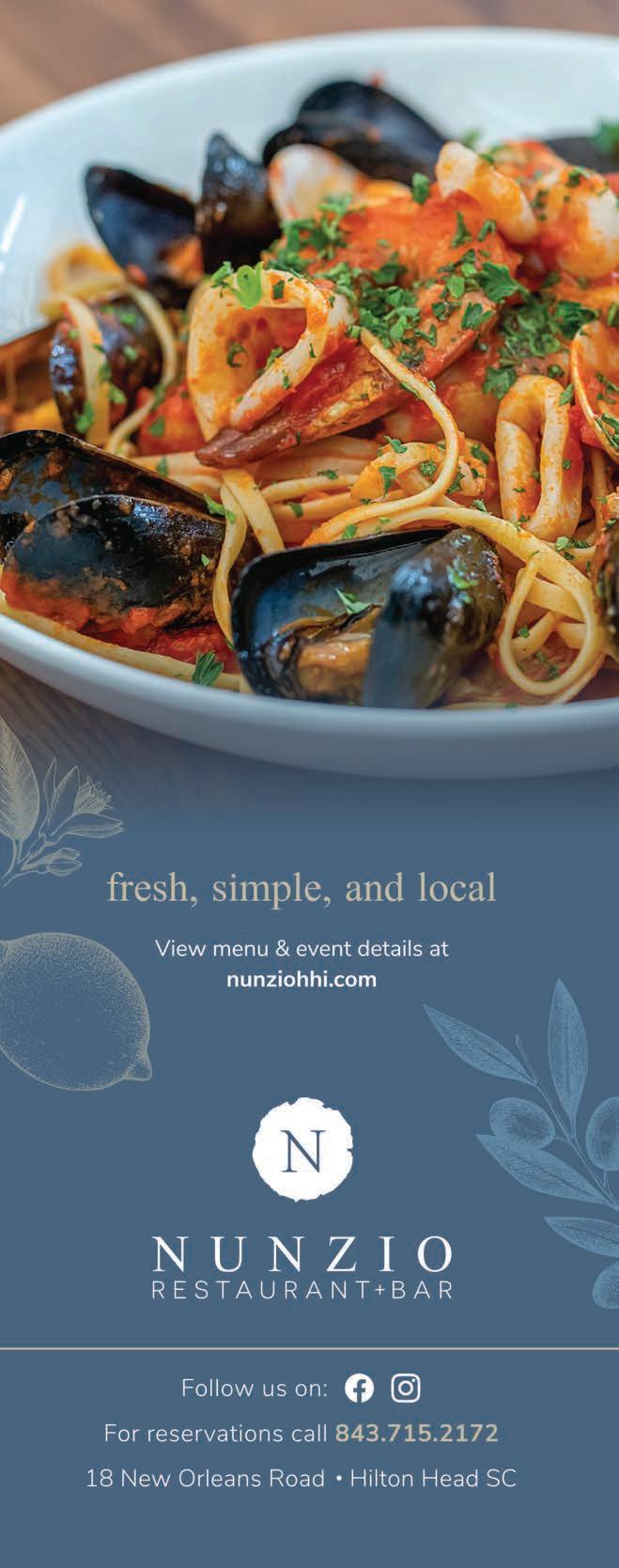 BISTRO 17 A favorite local restaurant on Hilton Head Island for years. The delicious country French cuisine is unique to the area, justly renowned for the quality of ingredients, delicious dishes and the infinite variety of local wines to accompany them. Bistro 17's menu features both American and French specialties. LOCAL Life Insider Tip: Ask to sit on the outdoor patio, watch the boat traffic, and enjoy the sunset. 17 Harbourside Lane, HHI • 843.785.5517 • bistro17hiltonhead.com