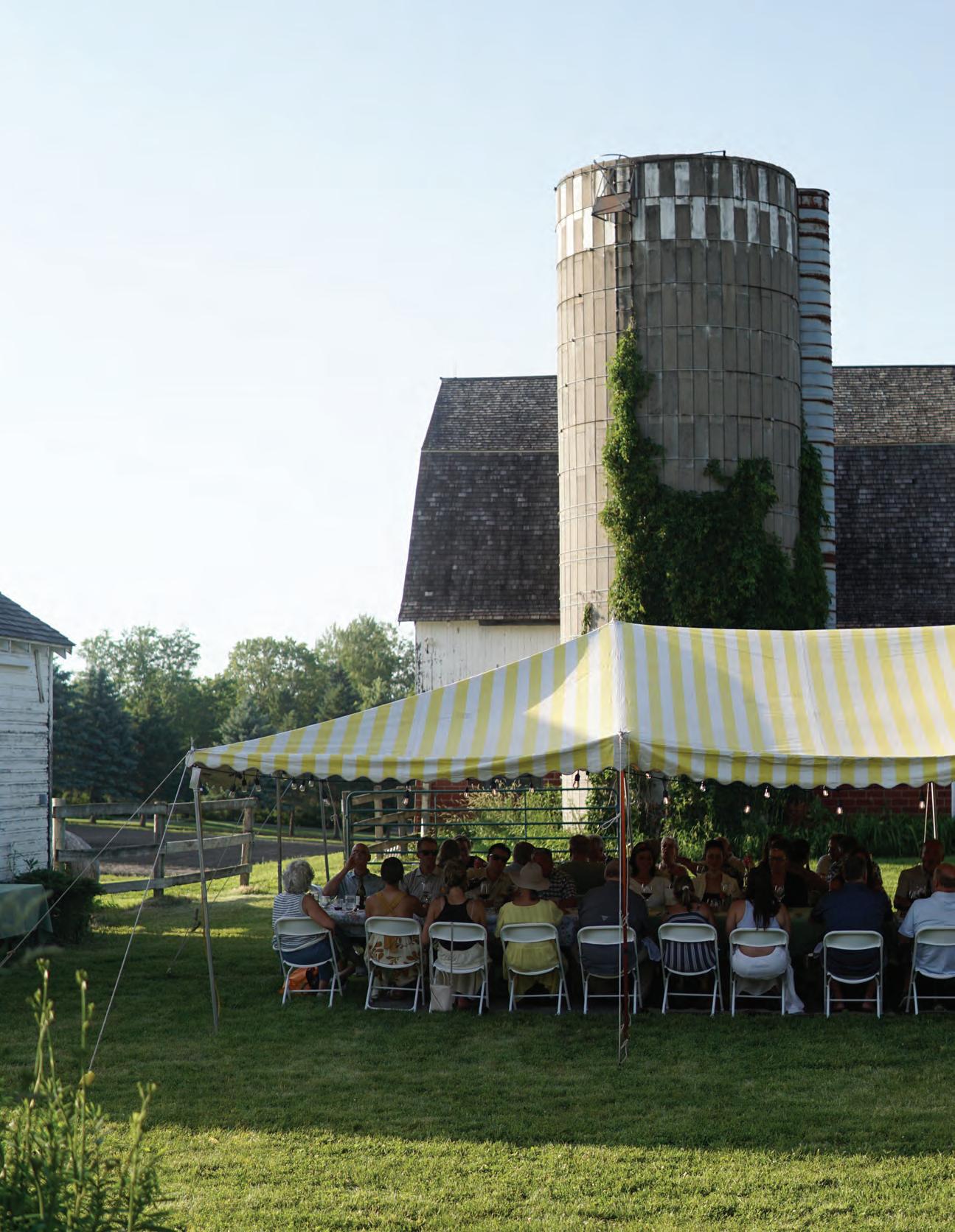 Dinners take place between a 1950s-era dairy barn and a granary with mocktails served at sunset. “Sunsets on the farm are spectacular,” Arends says.
