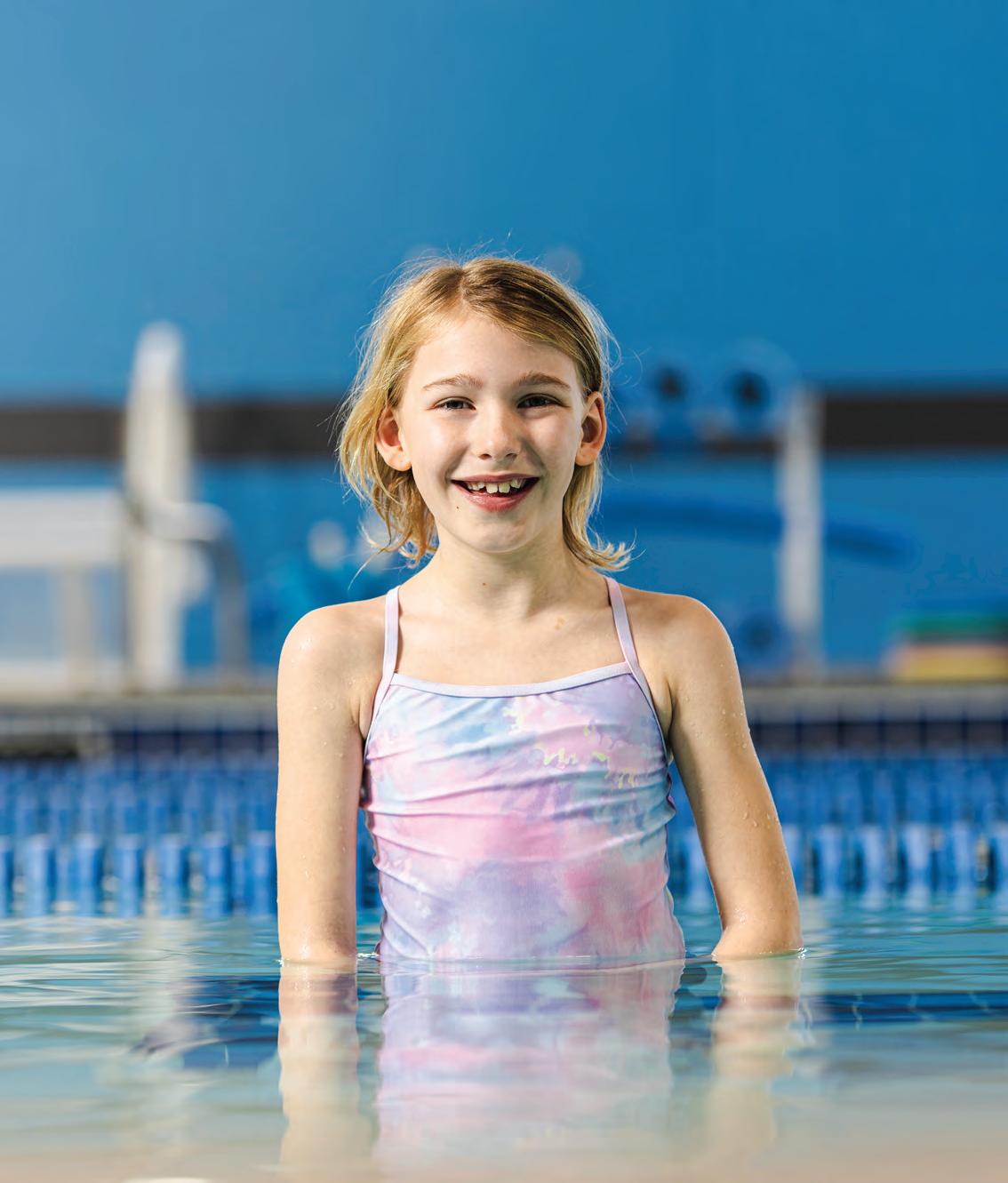 Sabrina Blommel, 8, is a confident young swimmer. Her mom, Kristina Wolfe, remembers that Sabrina was nervous to dip her feet in at her first swim lesson three years ago. Now, Sabrina enthusiastically talks about the pool and the friends she’s made. “I really like swimming now,” she says. “I just hop in the water.”