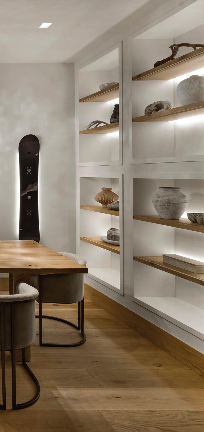 spot for plants, and helps spread natural light no matter which side of the house the sun is on.” In the dining room, floating shelves, a midcentury-esque white oak buffet and wall tile that matches the kitchen make the two rooms feel connected and purposeful, especially for entertaining.