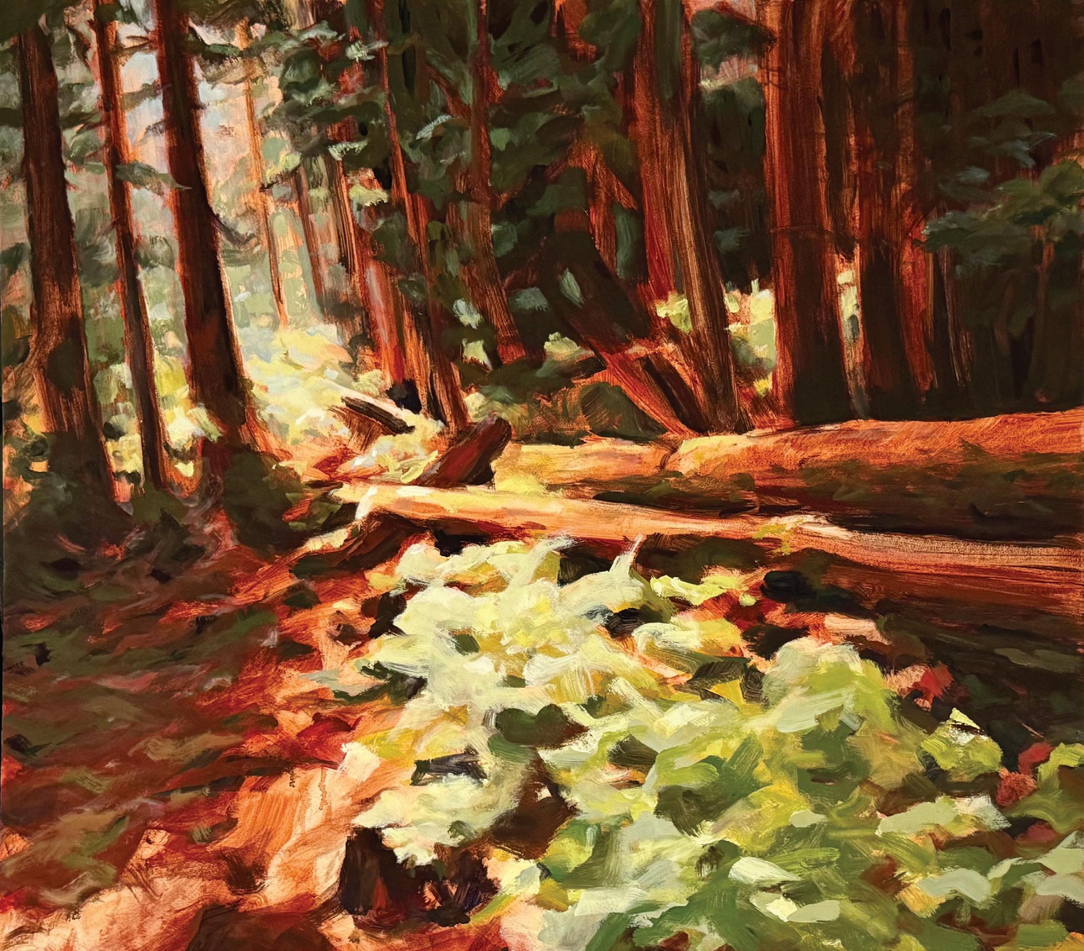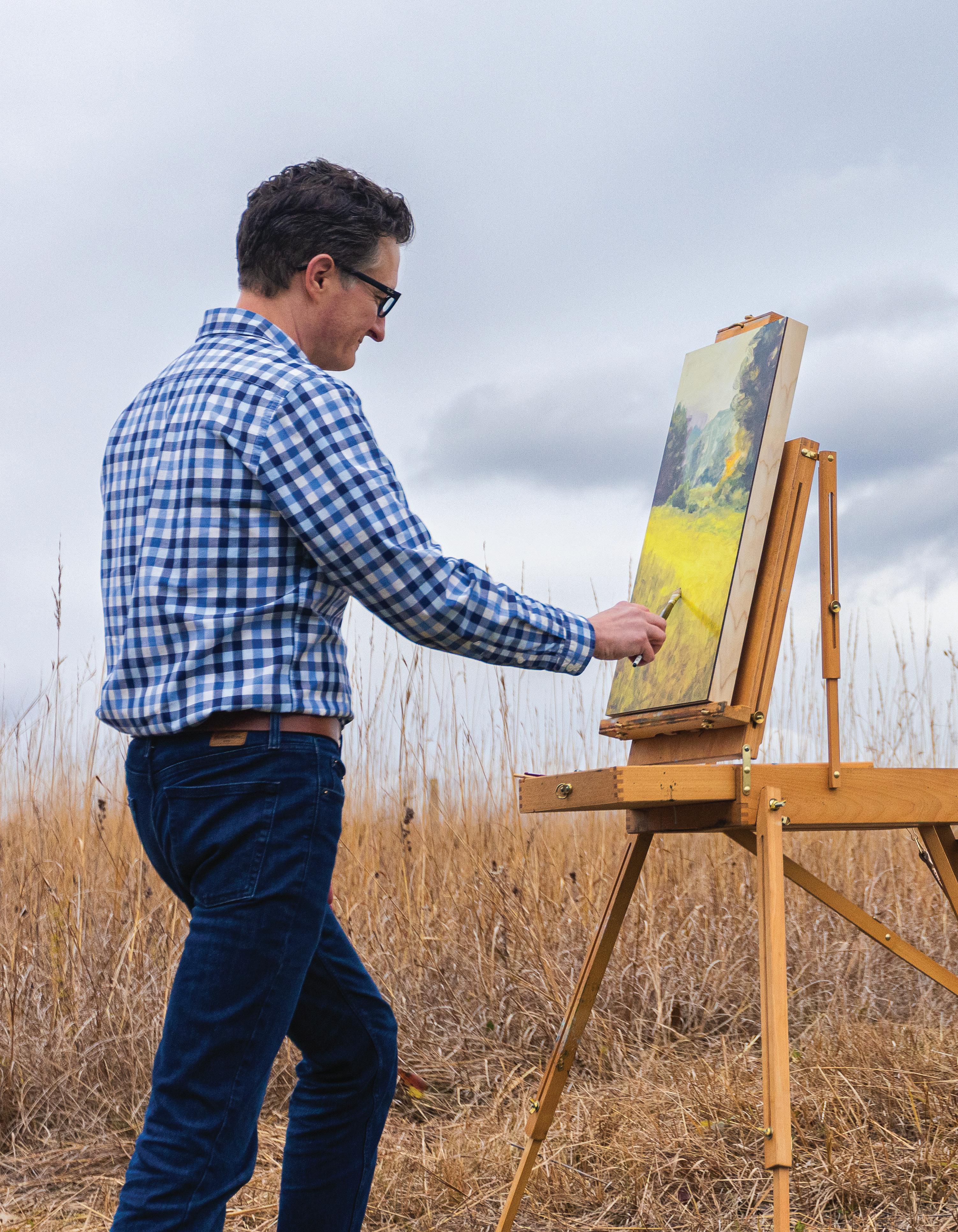 The problem-solving aspect of en plein air painting is, in fact, a big part of its joy. “How am I going to solve the problem of communicating the sounds and the smells and the experience of being out in nature on this flat, two-dimensional surface?” he asks.