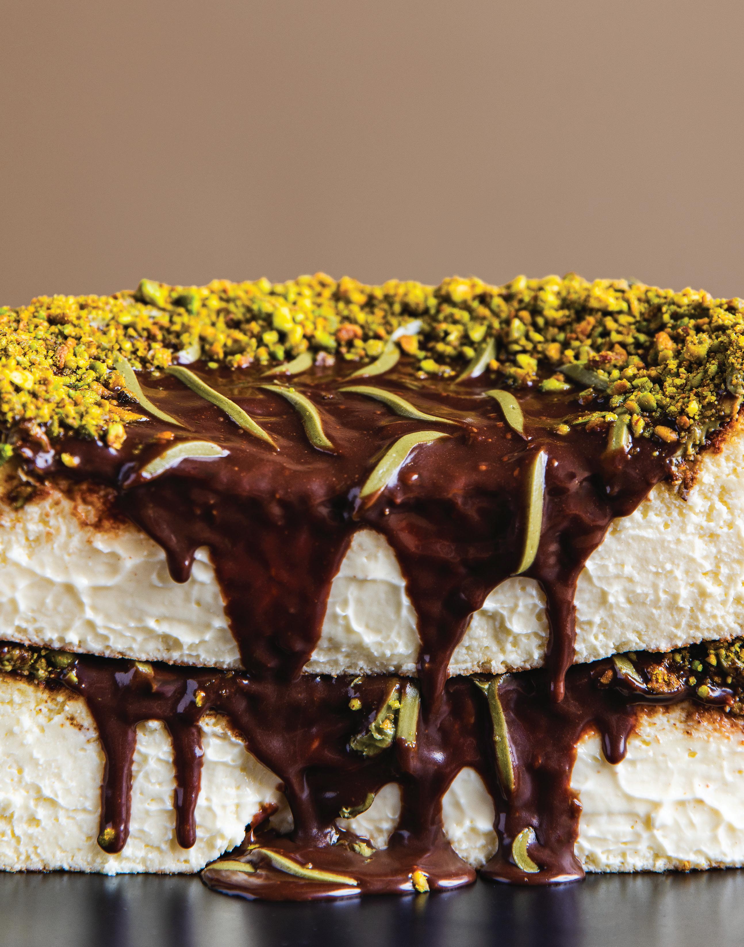 This viral sensation includes shredded phyllo dough, a chocolate hazelnut sauce and drizzled pistachio cream framed by a ring of crushed pistachios. (Page 24)