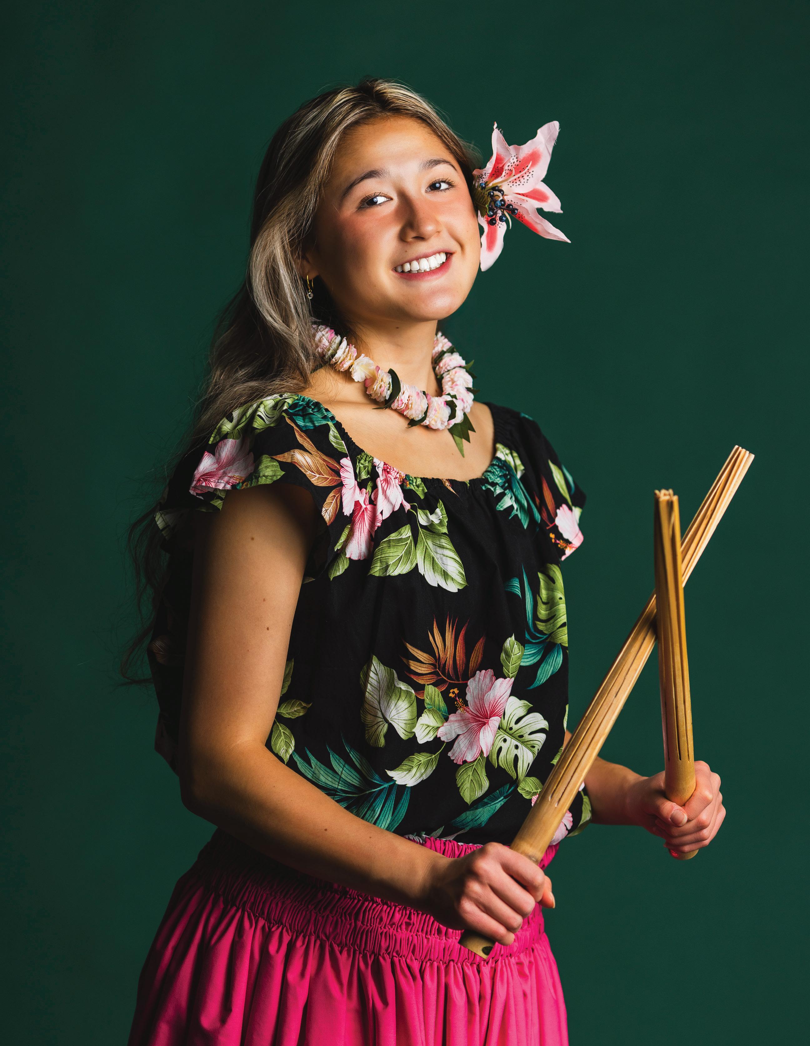 peers—Native Hawaiians and mainlanders alike. “My dad was born and raised in Hawai i and came to the mainland for school and work,” Alexis says. “He definitely wanted me to get involved with my culture because, when he was growing up, he did all the cultural activities, like hula.” Alexis, who lives in Little Canada and has attended MHS since eighth grade, has been active in a local hula hālau (dance school) since she was 9. “I really enjoy being part of that community,” she says.