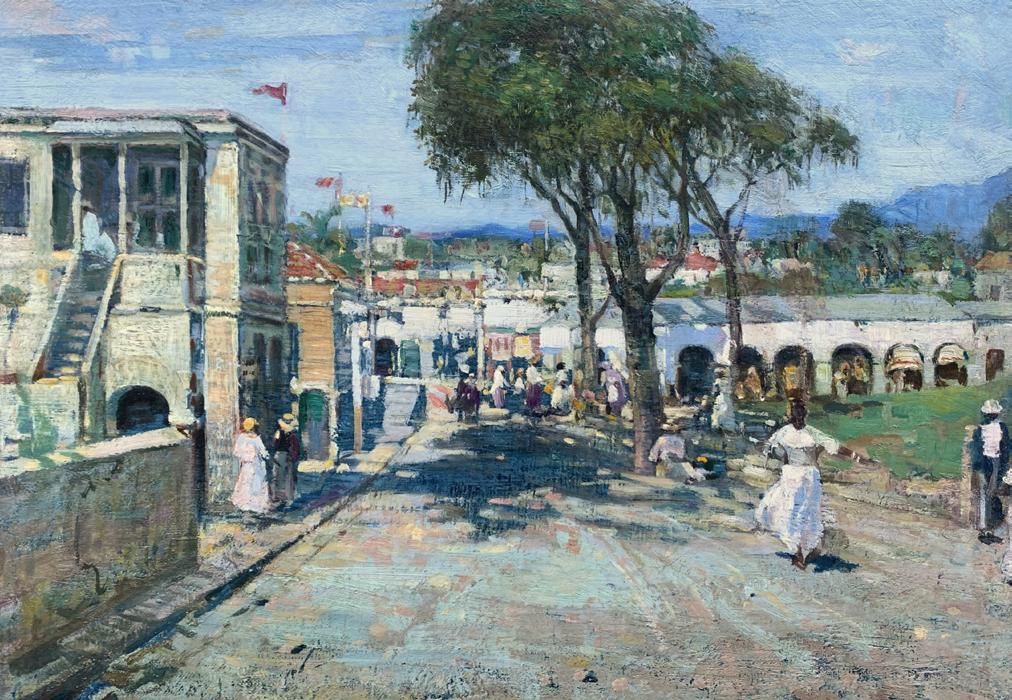 Peleg Franklin Brownell (1857 – 1946) Street Scene, West Indies, 1915 Oil on Canvas, 15” x 18”