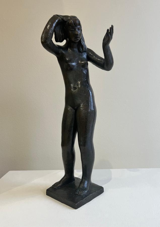 Leo Mol (1869 – 1937) Girl with a Mirror, 1983 oil on panel, 18.5” x 6” x 5.25”