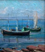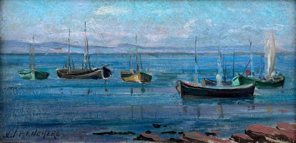 Sailing Vessels at Anchor oil on panel, 10” x 13”