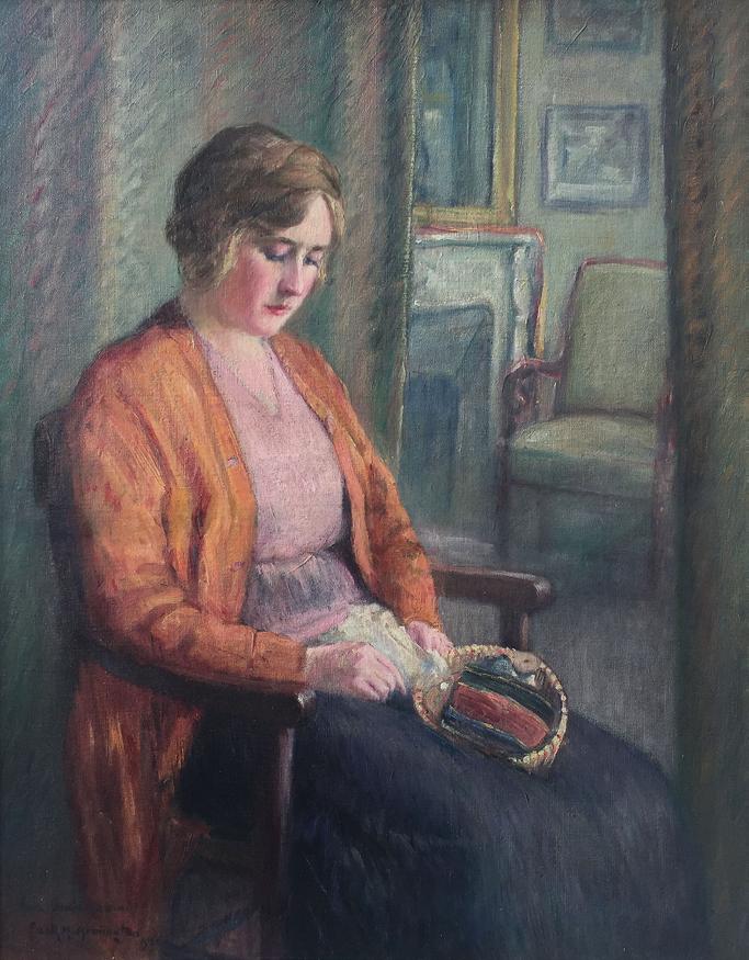 Jeune Femme Cousante oil on canvas, 35.5” x 28.5”