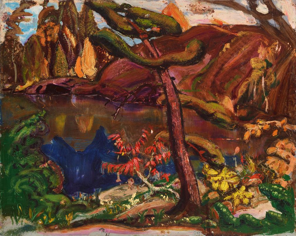 Literature: Fraser Thomson, Letter to Blodwen Davies, May 19th, 1930, Blodwen Davies Collection, C-4579, Library and Archives Canada, Ottawa; Joan Murray, The Art of Tom Thomson, Toronto, 1971, reproduced page 85; Harold Town and David P. Silcox, Tom Thomson: The Silence and the Storm, Toronto, 1977, reproduced page 160; 2017 edition, reproduced page 154; Dennis Reid, Collector’s Canada: Selections from a Toronto Private Collection, Toronto, 1988, no. 56, reproduced page 58; Joan Murray, Tom Thomson: Trees, Toronto, 1999, pages 88-89, reproduced page 89; Ian C. Dejardin, Painting Canada: Tom Thomson and the Group of Seven, London, 2011, reproduced page 96; Ian C. Dejardin and Sarah Milroy, Painting Canada: Tom Thomson and the Group of Seven, London, 2011, reproduced page 96; Ian Thom, et al., Embracing Canada: Landscapes from Krieghoff to the Group of Seven, Vancouver/London, 2015, reproduced page 136; Joan Murray, Tom Thomson Catalogue Raisonné (2016): inventory no. 1916.86; Tom Thomson (Annual Loan Exhibition), Galerie Eric Klinkhoff, Montréal, 2022, no. 19, reproduced page 22