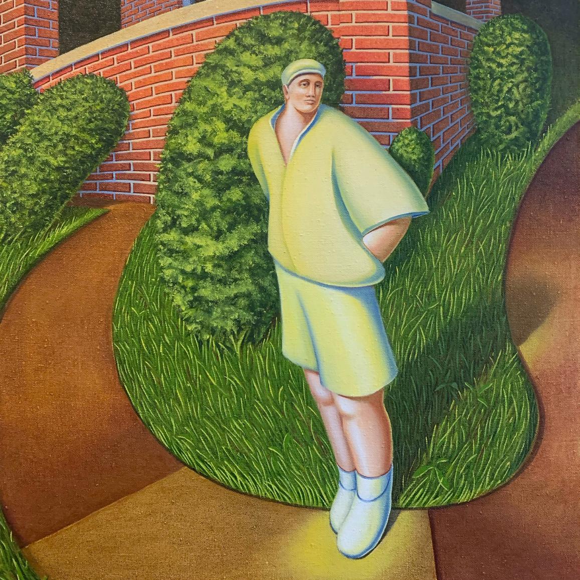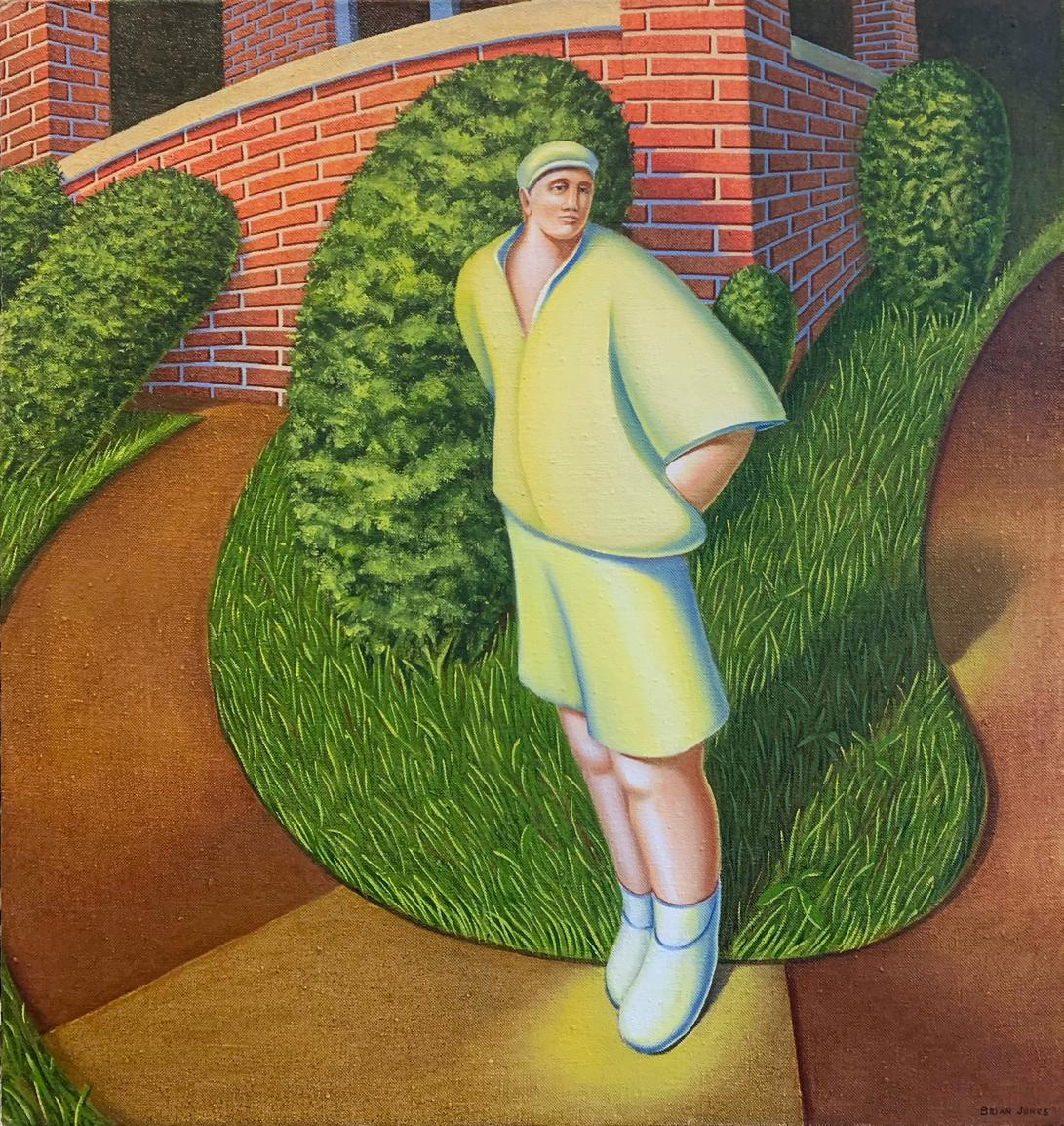 Notes: Susanne Jones” “Boy on Sidewalk - A “Neighbours” style painting from the height of the London era, c. 198283, this oil on canvas was inspired by a black and white family snapshot of a boy in front of Brian’s childhood home at 33 Stone Avenue in Chatham. This is one of the few paintings in which the human figure ... and the surrounding landscape ... are both equally distorted and stylized”