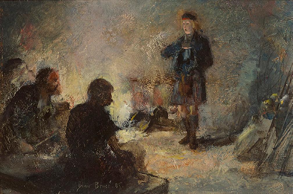 Highlanders at Campfire, 1885 oil on board, 7 x 10.25 inches