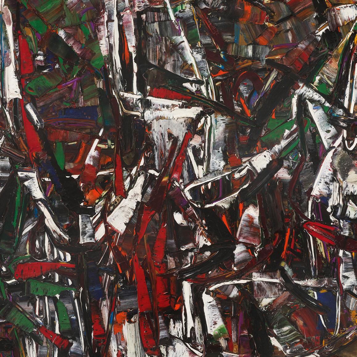 In Sous Bois II, this mature, abstract expressionist style is displayed in intense materiality and gestural spontaneity. The title, which translates to Underwood or Forest Undergrowth, gives a subtle hint to the natural inspiration behind the painting, but the visual field resists traditional representation of landscape. Instead, Riopelle offers a fragmented, immersive experience that evokes the sensation of being absorbed into nature rather than observing it.