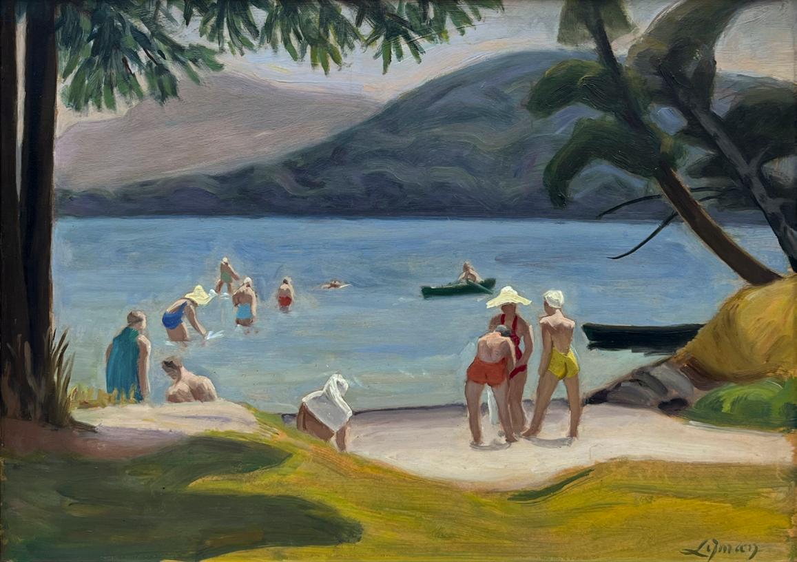 Much of his early career was spent abroad, and upon his return to Montreal in 1931, he had a fresh perspective on the Quebec landscape. The tradition of beach scenes in art dates back to Eugène Boudin and the atmospheric depictions of leisure by French Impressionists such as Claude Monet. Lyman was particularly drawn to the expressive power of beaches filled with bathers, a recurring theme in his work and characteristic of modern sensibility. His paintings