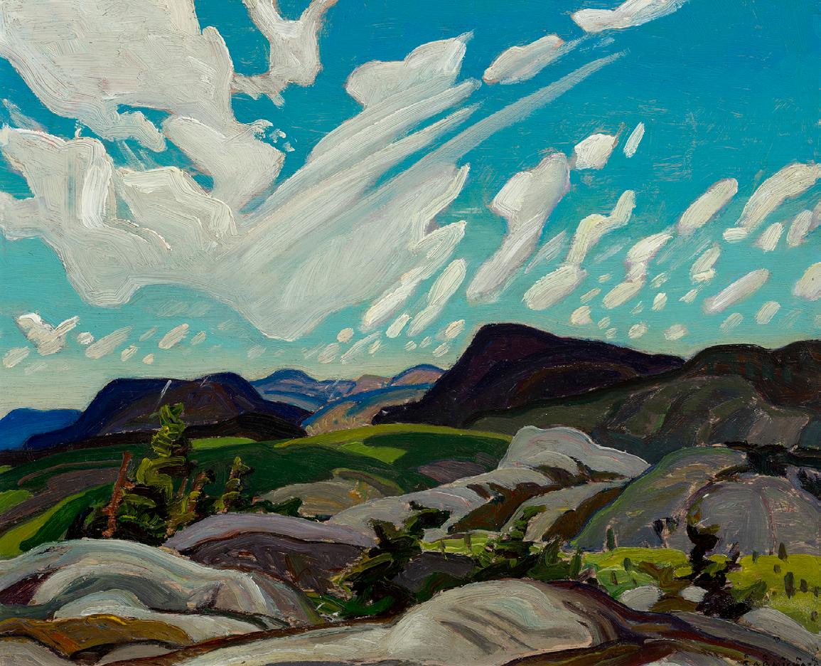 Franklin Carmichael was a member of the Group of Seven and a key figure in shaping Canadian landscape painting in the early 20th century. Born in Orillia, Ontario, he studied art in Toronto and later in Belgium, bringing together European training with a deep love for the northern Ontario wilderness. Carmichael was especially drawn to the La Cloche Mountains and Georgian Bay region, where he found inspiration in the rolling hills, bright skies, and ever-changing weather. His work is known for its lyrical quality, combining bold colour, clean lines, and a spiritual sense of nature’s rhythms.