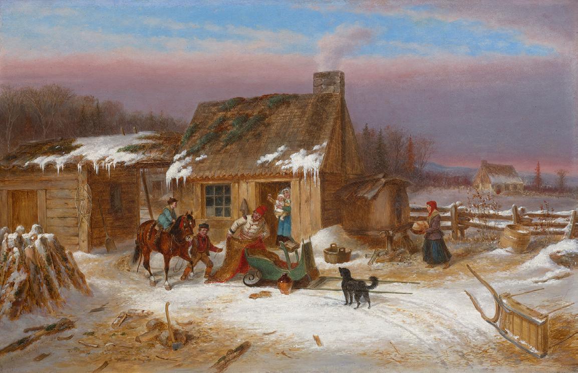A vivid and charming portrayal of 19th-century rural Canadian life, A Trip to Town portrays a family preparing a horse-drawn sleigh for a journey. The composition is dynamic and inviting, offering an abundance of information that draws the eye through the composition.
