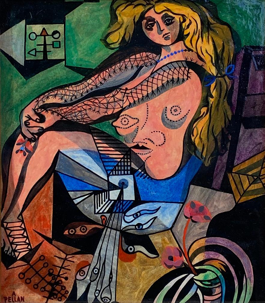 Settling in Montreal, Pellan became head of the advanced painting course at the École des BeauxArts in 1943. His work extended beyond painting to include book illustrations and costume designs, notably for a 1946 Montreal production of Twelfth Night. As a leader of the Prisme d’Yeux group in 1948, he championed an art free from ideological constraints, emphasizing pure expression and universal creativity.
